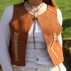 El chaleco está confeccionado con cuero de alta calidad para asegurar durabilidad y resistencia. Al tacto, el material destaca por su suavidad, ofreciendo máxima comodidad sin comprometer su robustez. Su detallado diseño espiga es una verdadera prueba de artesanía, dando muestra del cuidado y la precisión en cada aspecto de su fabricación.